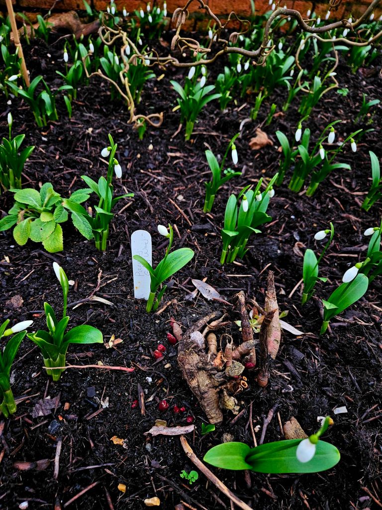 - Gooseberry (Ribes uva-crispa): Providing structure and summer fruits, these bushes leaf out in spring, following the snowdrops’ display.